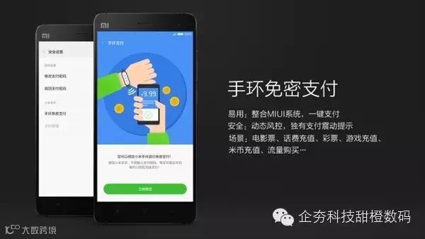 功能描述:小米钱包App绑定小米手环后,可实现免密支付。