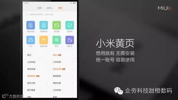 功能描述:小米手机率先在手机系统中集成手机黄页导航功能。
