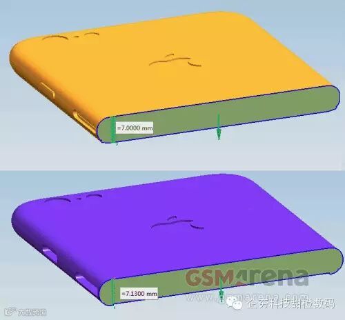 据悉,“iPhone 6s”会比当前的iPhone 6厚上0.1mm,增加至7.0mm。而“iPhone 6s Plus”则会比iPhone 6 Plus增加0.03mm,至7.13mm。