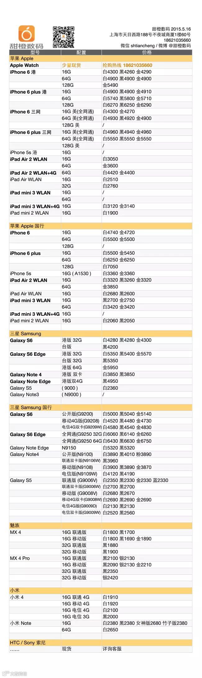 iPhone 6 plus 64G 港版再次走低,基本恢复到之前的合理价位了,港版 16G 有 10 元小涨,国行各版稳定,美版的今天小跌了 10 元;三星 Galaxy 系列手机价格稳定,iPad Air 1/2 和 iPad mini 2/3 系列也没有变化。