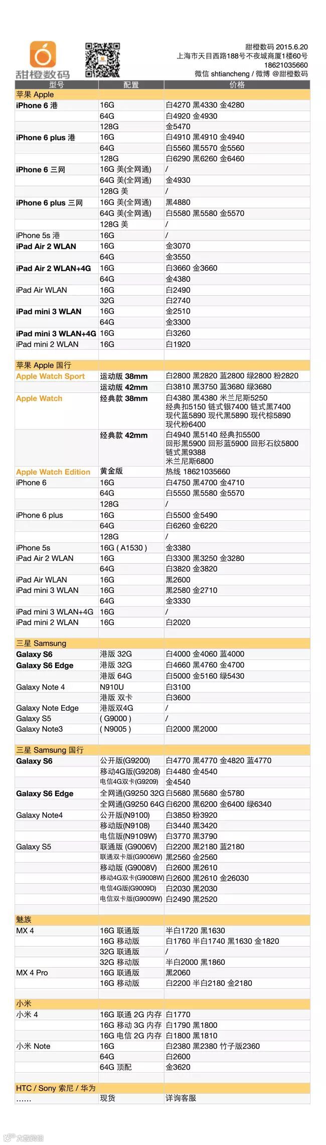 小长假到来,iPhone 6 及 plus 的港版却仍未止住反弹的步伐,今天再度上浮 10 元,国行版同样走势,但多款缺货型号恢复供货,美版 plus 有小幅降价;三星 Galaxy S6 和 S6 Edge 港版稳定,国行版出现了大幅降价;iPad 港版小降 10 元。