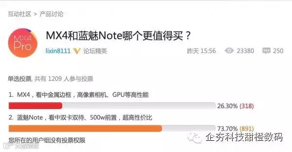 魅族社区展开的投票截止24日16点的结果可以看出,广大用户对这两款产品的相较的初步结果。