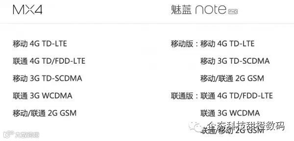 魅蓝NOTE不像MX4可以刷通用固件,而在官方参数同样可以看到,魅蓝NOTE把移动和联通两版定制机分别列出,和MX4差别对待,故而需要全网通的用户伤心少许。好在魅蓝NOTE支持双卡双待,可以捕获不少人心,不难猜测魅蓝NOTE会有运营商补贴。