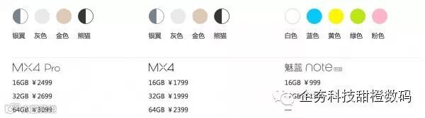 而魅族官方发布了魅蓝NOTE,以及魅族MX4和魅族MX4Pro的参数对比。