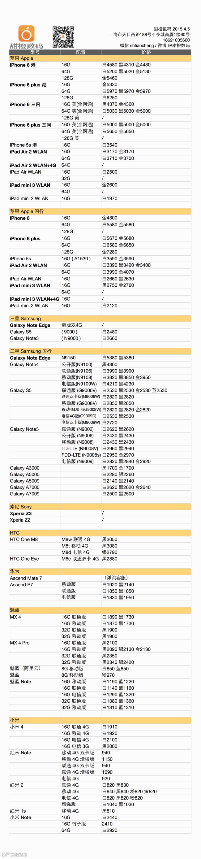 iPhone 6 及 plus 港版和国行价格较稳定,美版价格出现反弹后仍然走货很快,部分颜色供货不足;小米和魅族多款手机降价,红米 note 和 小米 note 降幅较大;三星 Galaxy Note Edge 和 Note 4 小幅反弹,Galaxy A 系列也有小幅反弹。