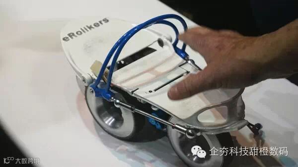 从外观来看Rollkers像是一款老式轮滑鞋,不过其实它内部整合了智能稳定平衡装置,即使用户本身不会轮滑也可以轻松使用;Rollkers内置有强力电能发动机,最高可达7英里每小时(约11km/h),而其大轮设计,一定程度上能起到缓冲减震的效果;此外,Rollkers还具备无线通信系统,让用户可进行远程操控,旨在为用户提供更健康、更快捷同时更绿色环保的出行方式。