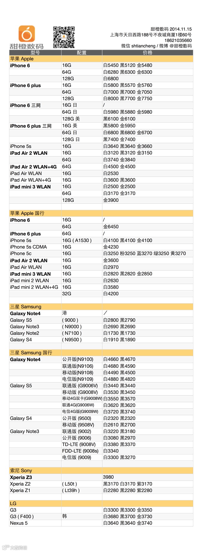iPhone 6 及 plus 总体平稳,iPhone 6 64G 缺货款少量补货;日版涨价消息一出,三网版行情前景堪忧,但今日暂未影响;Galaxy Note 4 的降价步伐两周来从未停歇;iPad Air 2 4G 版稍有降价,各款 iPad Air 1/2 及 iPad mini 2/3 均稳定。