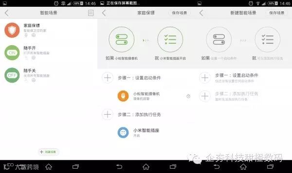 此前智能场景已经在小米路由App中登场,但由于搭配使用的智能家居产品并没有正式登场,所以显得鸡肋。智能场景其实就是智能家居产品之间的联动,目前可以在小蚁智能摄像机与小米智能插座中间进行联动功能,实现自动关闭、自动开启与相应的触发条件。