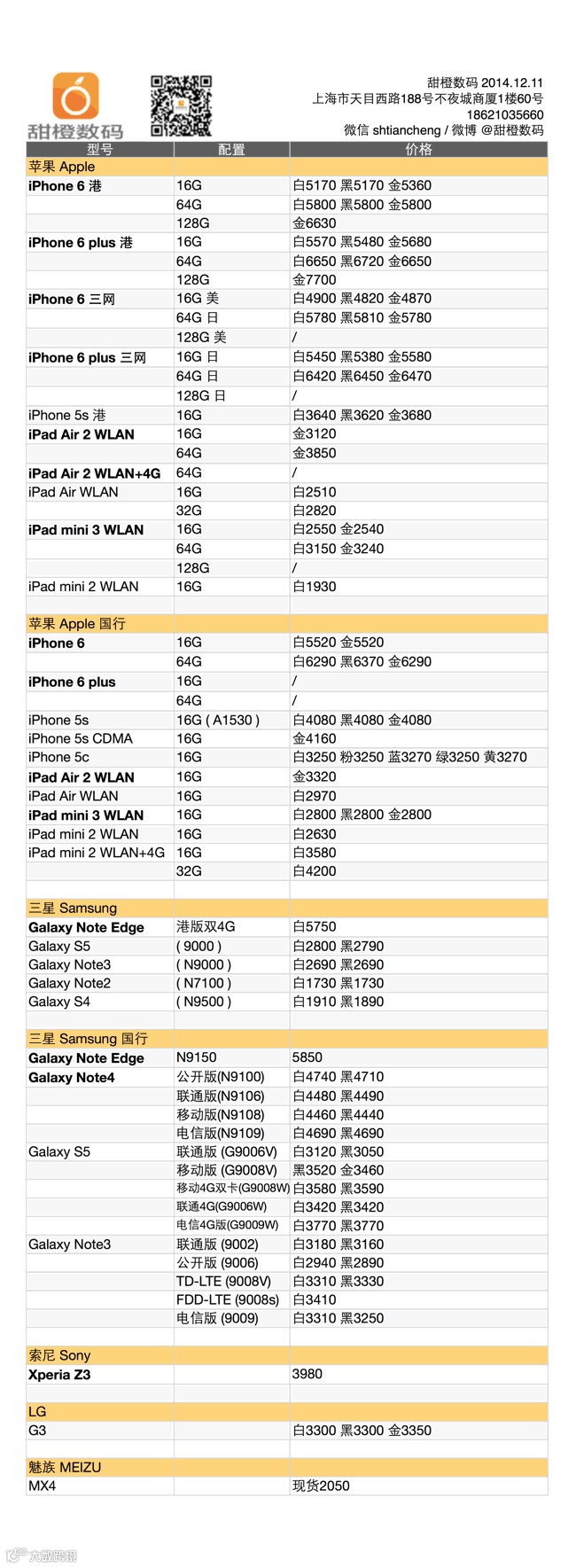 港版 iPhone 6 再降,适合入手,16G 土豪金补货到,但港版 plus 有小幅反弹;三网版 iPhone 6 美版也是有不小降幅,plus 方面则是稳定;国行各款 iPhone 6 稳定;三星 Galaxy Note4 和 S5 价格也略有松动,Galaxy Note Edge 国行已到。