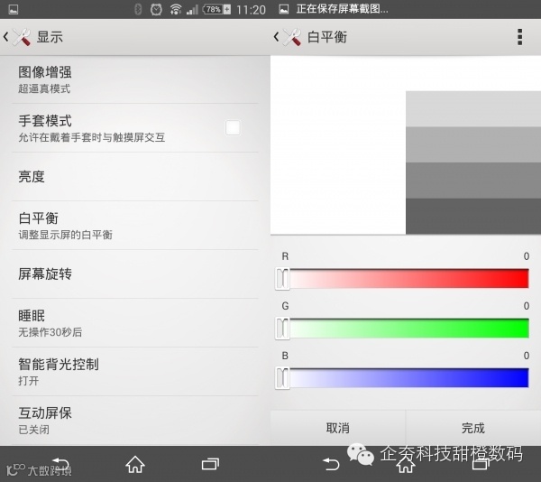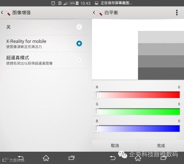 屏幕方面,Xperia Z3依然提供白平衡设计,并且在图像增强中,除了原有的X-Reailty for mobile之外,还新增了超逼真模式,在下文的屏幕对比环节中有相应的介绍。