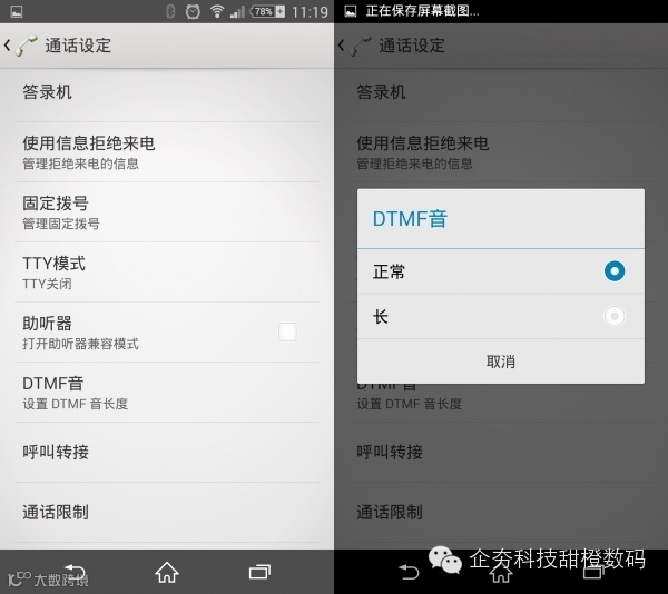 Xperia Z3还新增了一个挺奇怪的功能,就是调整DTMF音的长度。DTMF音其实就是拨打变化后的忙音,这个设置可以设置长短。(这个功能真心有够小众的不行了。)