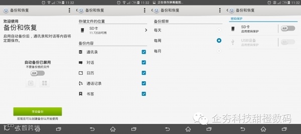 在Xperia Z3上,“备份和恢复”提供了自动备份功能,并可进行加密等功能。需要吐槽的是,几乎每一款Xperia Z系列手机的“备份和恢复”都有所改进与不同,带来的问题就是出现一定的兼容性,实在是吐槽无力。