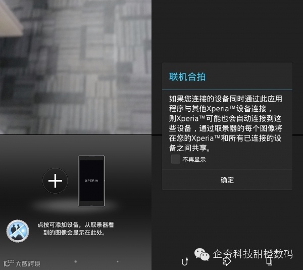 联机合拍可是实现索尼Xperia智能手机与相机之间的联动拍摄,其实就是将不同设备之间的取景同时拍摄,实现一定程度的多角度或者360°照片功能。这个功能在多人聚会时合照还是颇为有意思的呢。