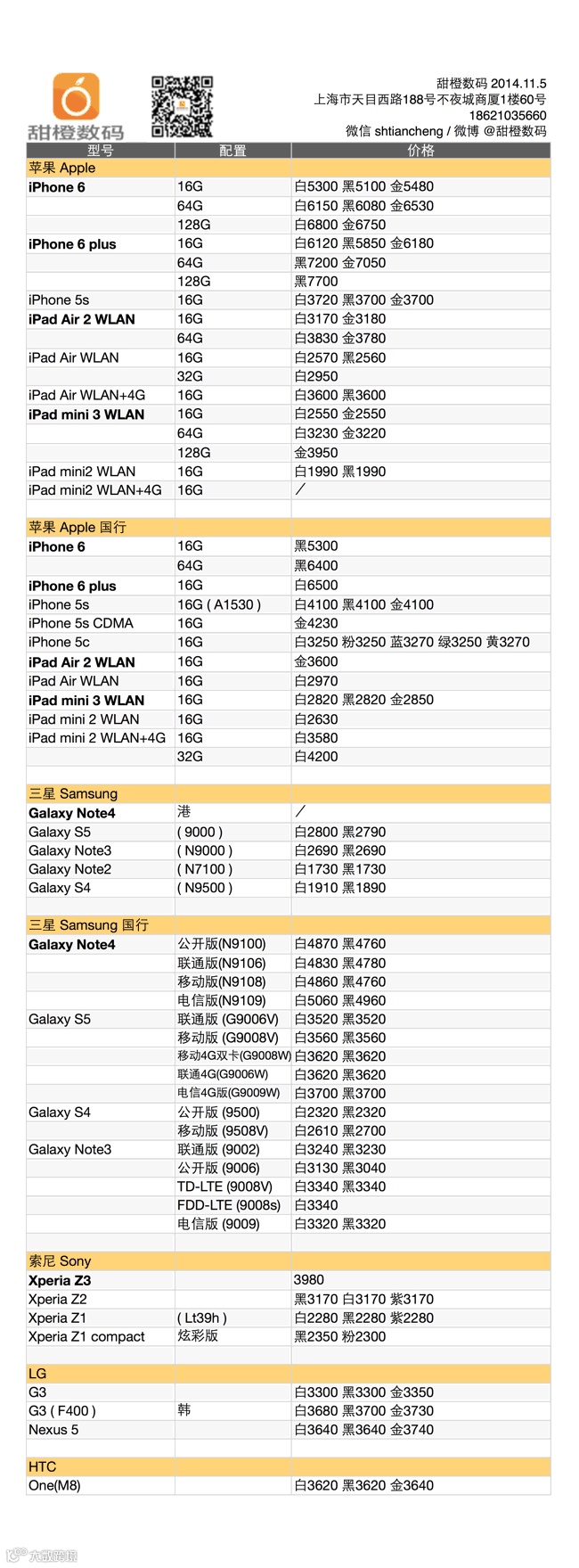 iPhone 6 及 plus 的大容量款缺货问题继续,小容量款的价格倒是出现了松动,16G 款相较昨天有 50 元左右的降幅;Galaxy Note 4 和 Galaxy S5 的黑色款略有降价;iPad Air 2 64G 白色款继金色之后也已到货,iPad mini 3 稳定。