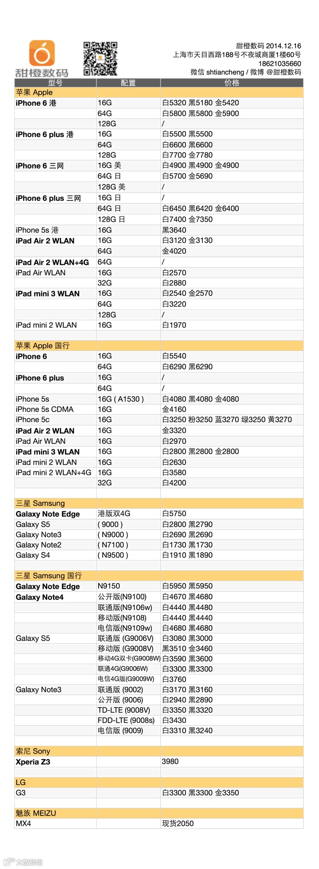 iPhone 6 港版稳定,plus 则有小幅反弹;三网版和国行版小有松动,各版本均出现了金色款缺货的现象;三星 Galaxy Note 4、S5、Note 3 许久未动的价格出现了松动;iPad Air 和 Air 2 也是微微下调;iPad mini 3 仍然坚挺,5s 仅剩黑色。