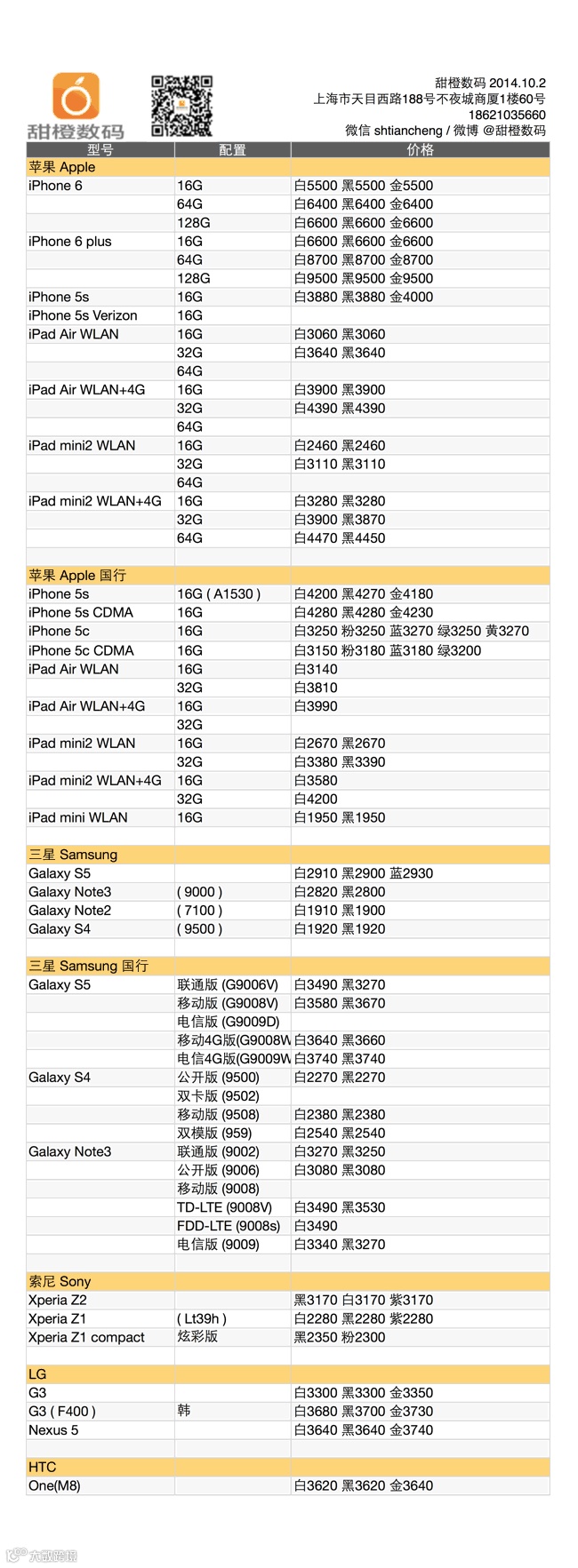 三星新款大屏旗舰 Galaxy Note4 已到货加入战局;iPhone 6 最低已进入 5500 大关,即使是最高配的 iPhone 6 plus 128G 也已不要万元;iPad Air 及 iPad mini2 的突发涨价有所缓解;学生购机 0 元首付,每月最低还款仅 250 元,详询客服。