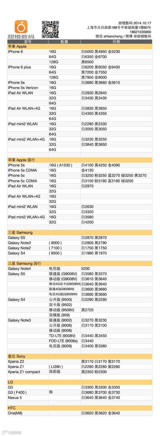 iPhone 6 及 plus 16G 的价格保持稳定,但 64G/128G 的缺货涨价状况未有改善,同时由于喜好不同,各颜色之间的差价也逐步拉大;iPhone 5s 白色和金色出现降价,黑色款已一机难求;Galaxy S5 稳定,但 Galaxy S4 的突然小涨始料未及。