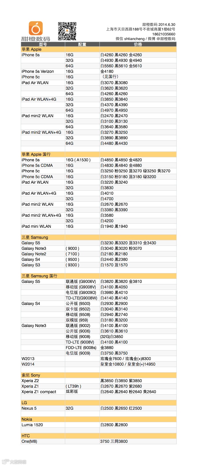 企夯科技甜橙数码双卡 LTE 版 Galaxy S5 G9008w 今天大降,有需要的朋友赶紧出手;iPad mini2 和 iPad Air 的 WLAN 16G 版出现反弹,之前没及时下手的朋友要再等等了。