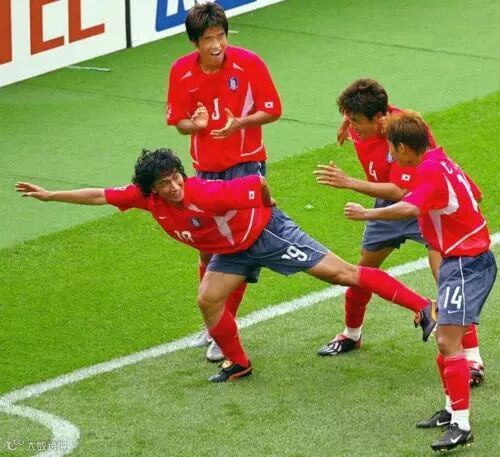 20.安贞焕进球庆祝:韩国-美国(2002)韩日世界杯上安贞焕的这个滑冰动作成为经典。他不仅通过进球挽救了韩国队,而且在进球后,安贞焕迅速跑到角旗的位置,夸张的做着一个滑冰的动作,而他的一帮队员则在他身后做着呼应的动作,其中在安贞焕身后的李容乙更是做着一个夸张的即将摔倒的动作。他通过这一动作表达了对美国在冬奥会上“窃取”金牌的不满,也赢得了国民的支持。