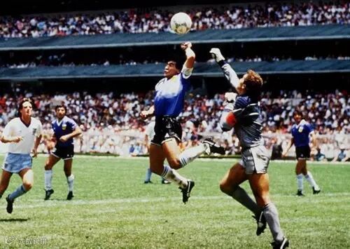 1.上帝之手:阿根廷-英格兰(1986),马拉多纳用手将球打进球门,制造了世界杯历史上最大的冤假错案。