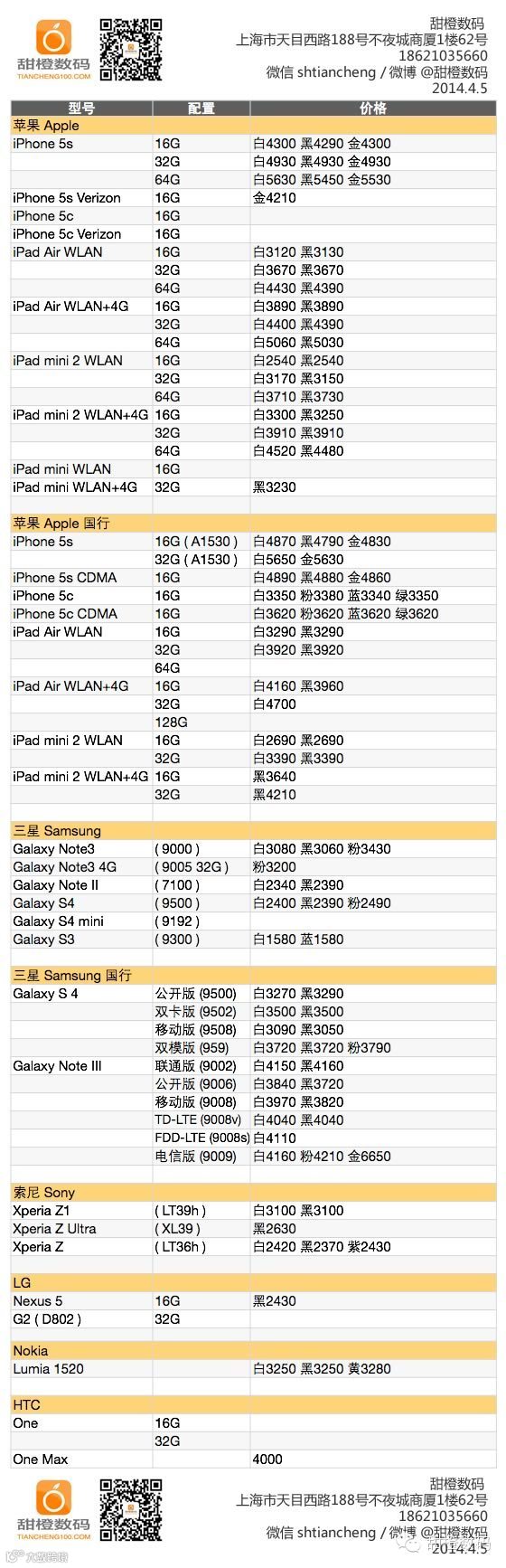 iPhone 5s 16G 白色和金色今天再次上涨 10 元,近期市场需求较大,有需求的朋友得关注行情;三星 Galaxy Note3 白色款稍稍上扬了一点,但价格始终坚挺的粉色款今日跌了不少;Galaxy S5 目前仍处于预订阶段。