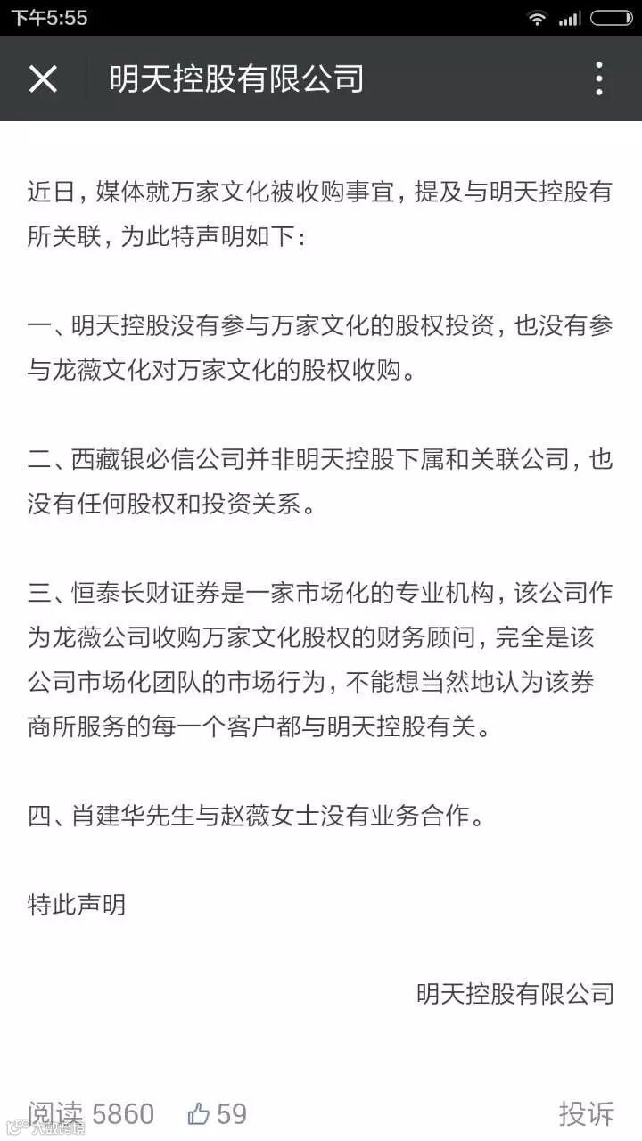 13号一大早,“明天系”也出来澄清了。明天系是这么说的: