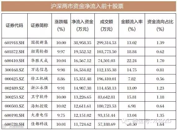 个股层面,中国重工、中粮地产、工商银行、际华集团、保利地产等“大蓝筹”净流出金额居前,昨日分别达到14.50亿元、6.50亿元、6.15亿元、4.73亿元和4.58亿元;但以资金流向占比而言,科林环保、浙江世宝、宏达新材等中小板股票昨日大多数值偏低,上述三股昨日分居前三,为-6.13%、-5.61%和-5.41%。