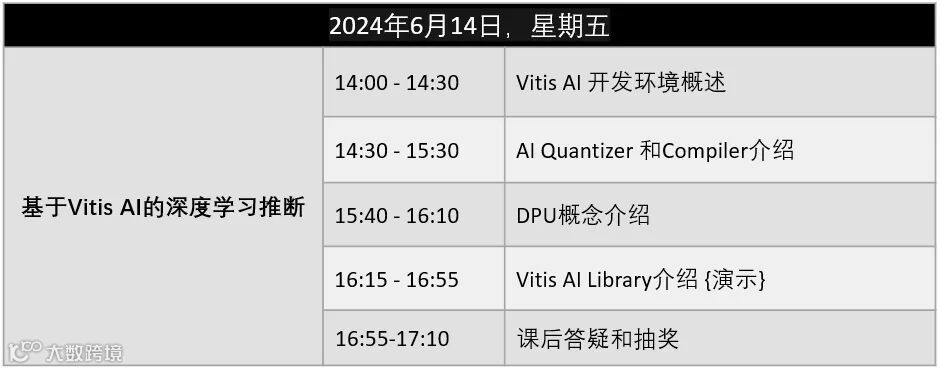 欢迎参加AMD 官方授权培训提供商-依元素科技举办的在线培训活动,专注于AMD 最新工具和前沿技术的培训和解决方案!Vitis™ AI 开发环境适用于在 AMD 硬件平台(包括边缘器件和 Alveo 加速卡)上进行人工智能推断。它由优化的 IP、工具、库、模型和示例设计组成。Vitis AI以高效易用为设计理念,可在 AMD FPGA 上充分发挥人工智能加速的潜力。此次为期半天的培训,将面向专门用于卷积神经网络的可编程引擎DPU,并基于边缘端MPSOC器件(以官方ZCU104开发平台为例),引领开发者快速搭建基于Vitis AI的DPU开发环境,结合实际应用开发实例,了解Vitis AI开发的整个流程及其功能特性。