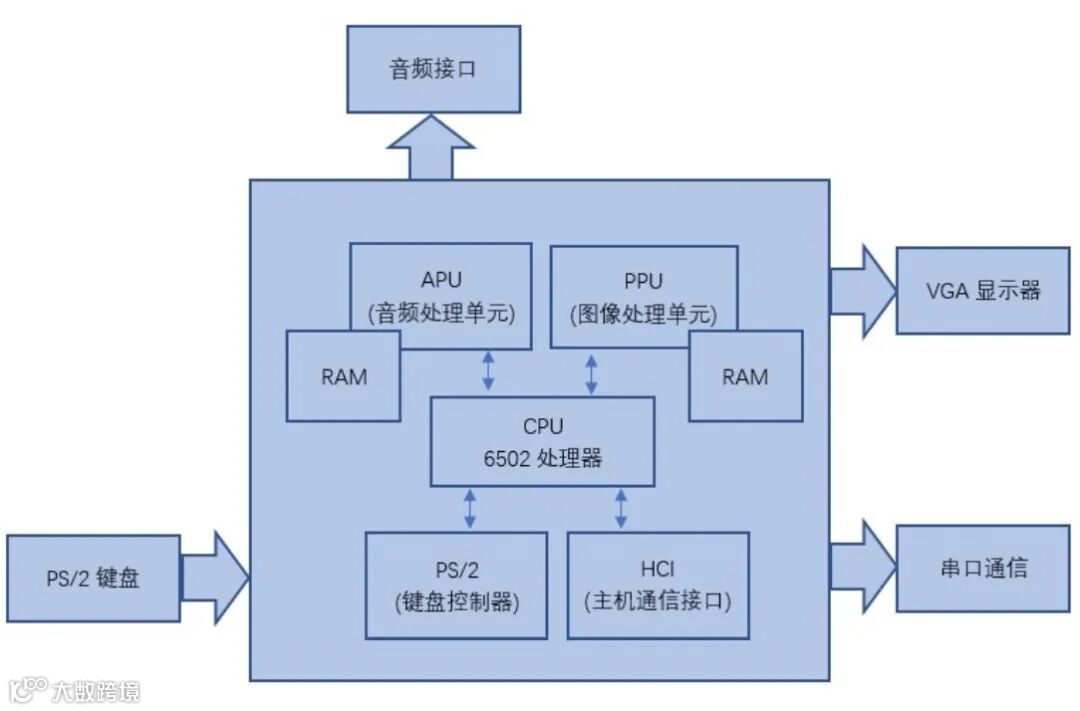 本次的游戏模拟器通过FPGA实现6502 CPU,并添加了各种外设实现了一台游戏机。6502 CPU是一家名为MOS科技的公司推出一块售价25美元的微处理器,此后,这块CPU被广泛的应用于苹果电脑、任天堂FC及兼容机、学习机等。到了90年代,当时中国学生几乎人手一台的文曲星也用了这块CPU,培养了整整一代中国玩家。