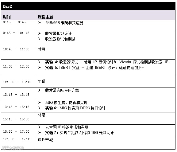 1.培训为期2天,结合案例分析,全面细致地讲解基于Xilinx高速接口设计的相关理论及其设计实现。