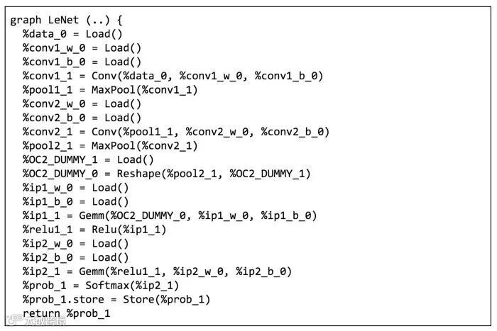 图2:LeNet的IR,由ONNC从ONNX转换而来。