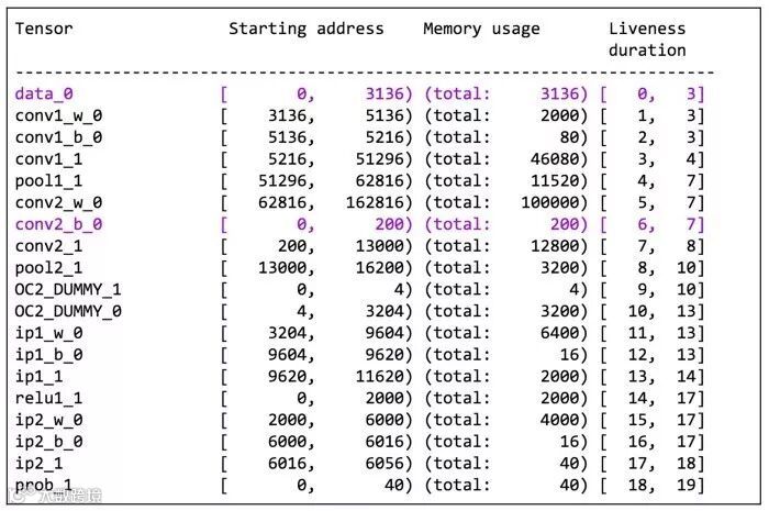 图3:LeNet的内存分配结果。