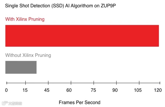 而在边缘 AI 平台,赛灵思方案利用 CNN 剪枝技术获得了 AI 推断性能的领导地位,比如,可实现 5-50 倍的网络性能优化;大幅增加 FPS 的前提下降低功耗。对于开发者来说,赛灵思支持 Tensorflow、Caffe 和 MXNet 等网络,并用赛灵思提供的工具链将网络部署到赛灵思的加速器上。