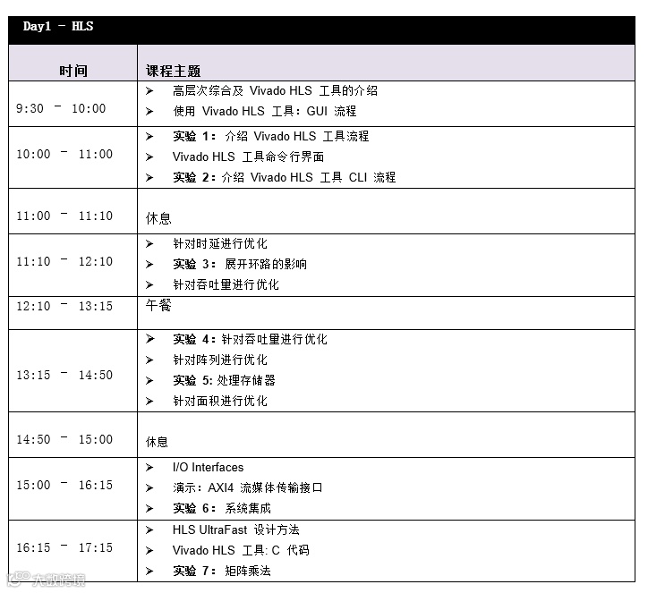 你想加速您的系统开发流程吗?你渴望借助“硬件加速”来提升系统性能吗?你希望用 C/C++ 抽象语言来编程 SoC 吗?赛灵思 SDSoC 开发环境可以帮你实现上述所有愿望。该软件开发环境将让你可以用 C/C++ 直接开发和优化基于 Zynq SoC 和 Zynq UltraScale+ MPSoC 软硬件系统,可实现系统级的特性描述、可编程逻辑中的自动软件加速、自动系统连接生成以及可加速编程的各种库。面向系统以及硬件工程师,SDSoC 开发环境提供了一个可以大幅提升生产力的引爆点;而面向软件工程师,SDSoC 开发环境可使其直接受益于可编程 SoC 的硬件加速优势。为期2天的培训课程,将通过一个个完整的流程案例,手把手教你如何针对一个硬件优化的系统将 C 代码进行优化和调试。同时,在正式体验SDSoC开发工具之前,还将为您介绍Vivado HLS工具的使用及其优化技巧,以便为更好地使用SDSoC打下基础。