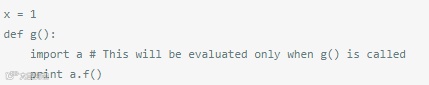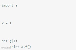 仅仅存在一个循环导入并不是Python本身问题,如果一个模块被导入,Python就不会试图重新导入。根据这一点,每个模块在试图访问函数或变量时,可能会在运行时遇到些问题。