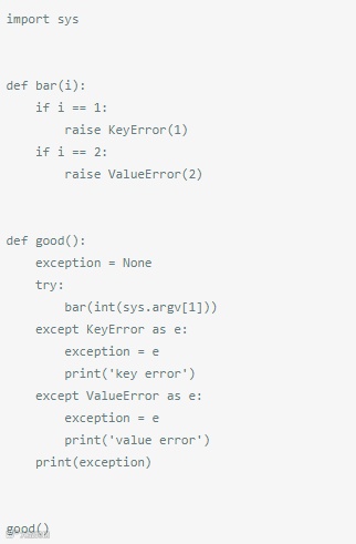 在一个异常语句里捕获多个异常的正确方法是指定第一个参数作为一个元组,该元组包含所有被捕获的异常。与此同时,使用as关键字来保证最大的可移植性,Python 2和Python 3都支持该语法。