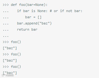 Python允许开发者指定一个默认值给函数参数,虽然这是该语言的一个特征,但当参数可变时,很容易导致混乱,例如,下面这段函数定义:
