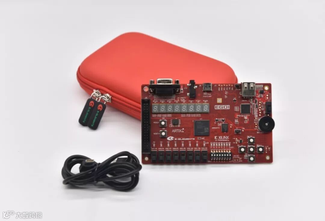 Xilinx大学计划口袋实验平台EGO1平台是赛灵思大学计划-依元素科技与上海交大联合开发的适用于学生学习、创新设计的便携式FPGA实验平台。该平台板载Xilinx 28nm工艺的Artix-7系列FPGA芯片,外围连接有LED灯、拨码开关、七段数码管、按键等基本接口;以及VGA、音频和蓝牙等接口;此外该平台还具有板载AD/DA模块以及丰富IO扩展接口,可以满足学生自主学习练习与EDA课程实验需求。