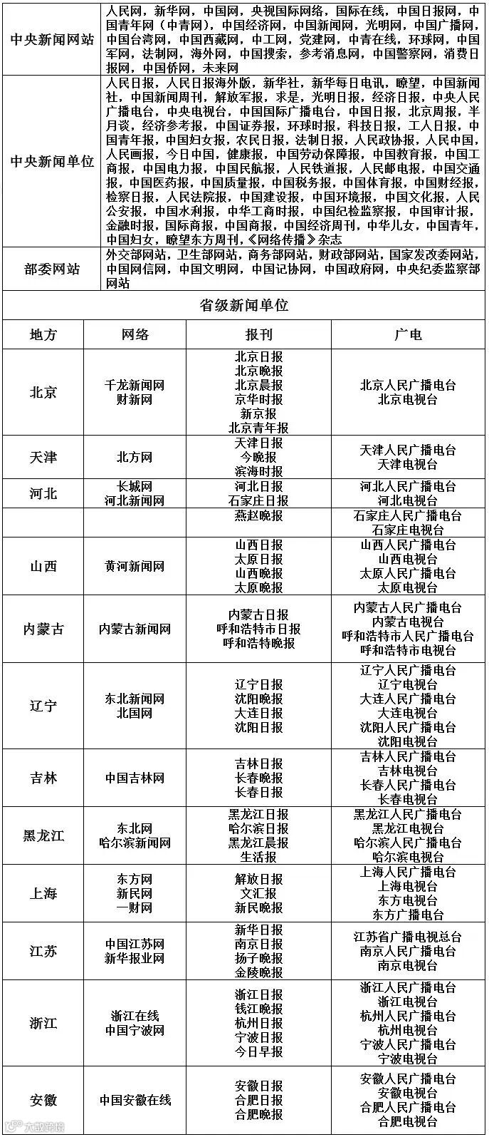 网信办公布可供网站转载新闻的新闻单位(附详细名单)