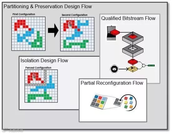赛灵思器件还具备硬件隔离特性,这使得安全和非安全的任务可以同时在一块芯片上执行,同时,设计的更新不会干扰或接触已经获得安全认证的部分。通过容错设计来控制系统故障模式的能力需要一种能够控制故障扩散的方法。赛灵思隔离设计流程(见下图)在FPGA模块层就提供了故障容器,支持单个芯片的容错处理。