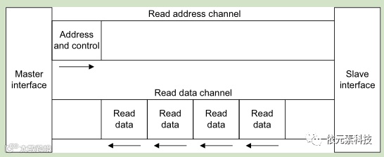 读数据通道:读数据通道承载着读数据和读响应信号包括数据总线(8/16/32/64/128/256/512/1024bit)和指示读传输完成的读响应信号。