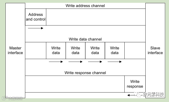 写响应通道:“从”使用写响应通道对写传输进行响应。所有的写传输需要写响应通道的完成信号。