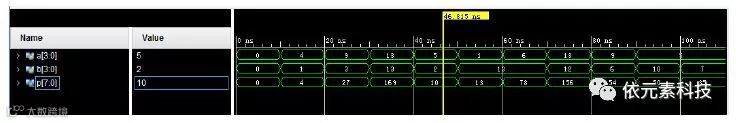 4位乘法器电路的仿真激励如下所示: