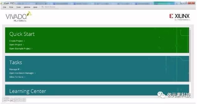 首先当然是打开Vivado工具咯,这里我们使用最新的2017版本的Vivado开发环境。什么?你还没有安装Vivado么?别担心啦,我们提供有详细的Vivado安装流程,请点击这里查看。