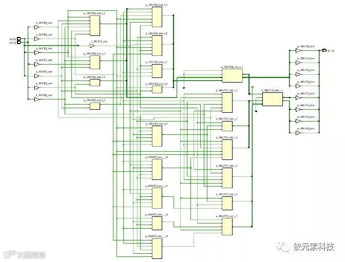 最后,我们完成设计的整体实现,可以看到这段电路在实际的FPGA芯片中的线路图。