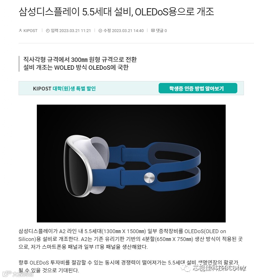 Micro OLED | 三星显示正将5.5代A2部分产线改为硅基OLED