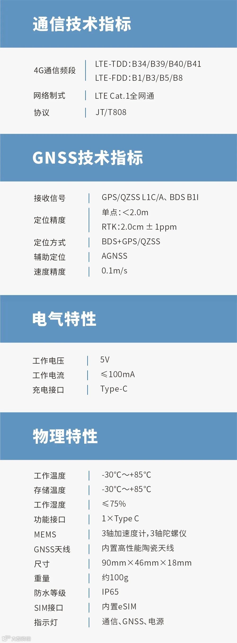 采用梦芯科技自研的高精度GNSS定位模块,支持北斗、GPS和QZSS卫星信号,通过内置RTK算法,实现厘米级定位精度