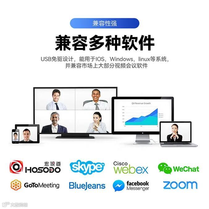 体验流畅稳定: 自适应算法,光照变化无感切换,会议更专注。