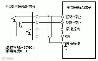 图1 B 晶体管型PLC输出与变频器连接的运行方式