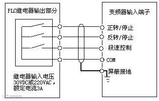 利用PLC的开关量输出控制变频器。PLC的开关输出量一般可以与变频器的开关量输入端直接相连。这种控制方式的接线简单,抗干扰能力强。利用PLC的开关量输出可以控制变频器的启动/停止、正/反转、点动、多段速和加减时间等,能实现较为复杂的控制要求,但只能有级调速。